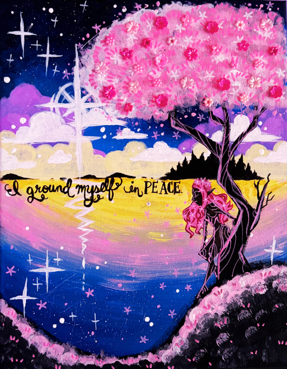 Peaceful Dryad. Mixed Media Acrylic Painting.