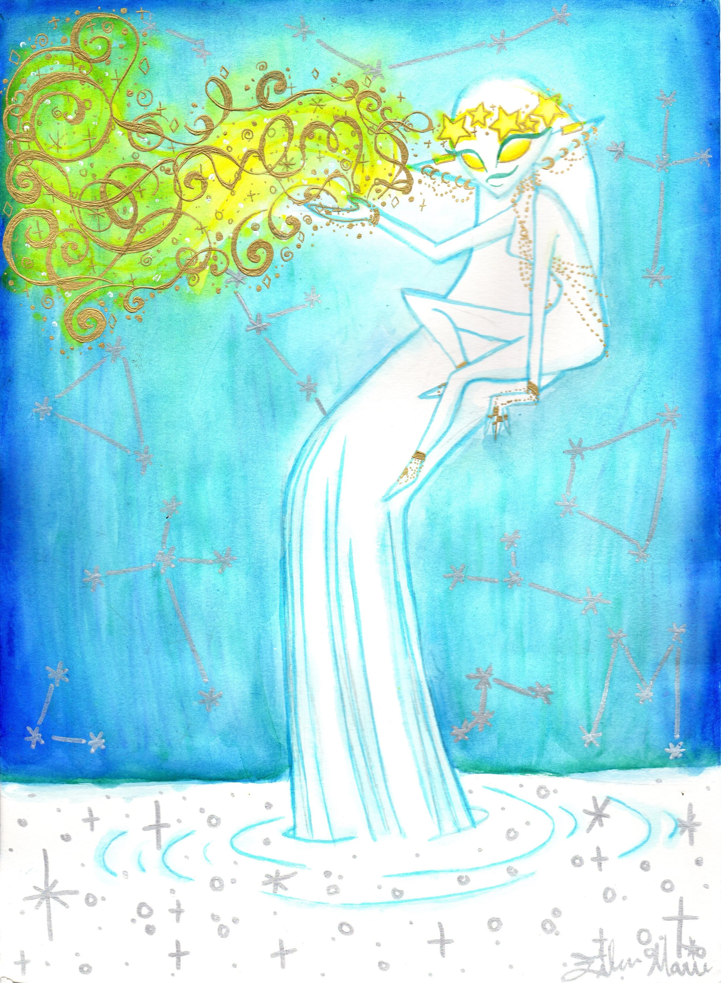 Constellation Starfall. Watercolor & Ink.