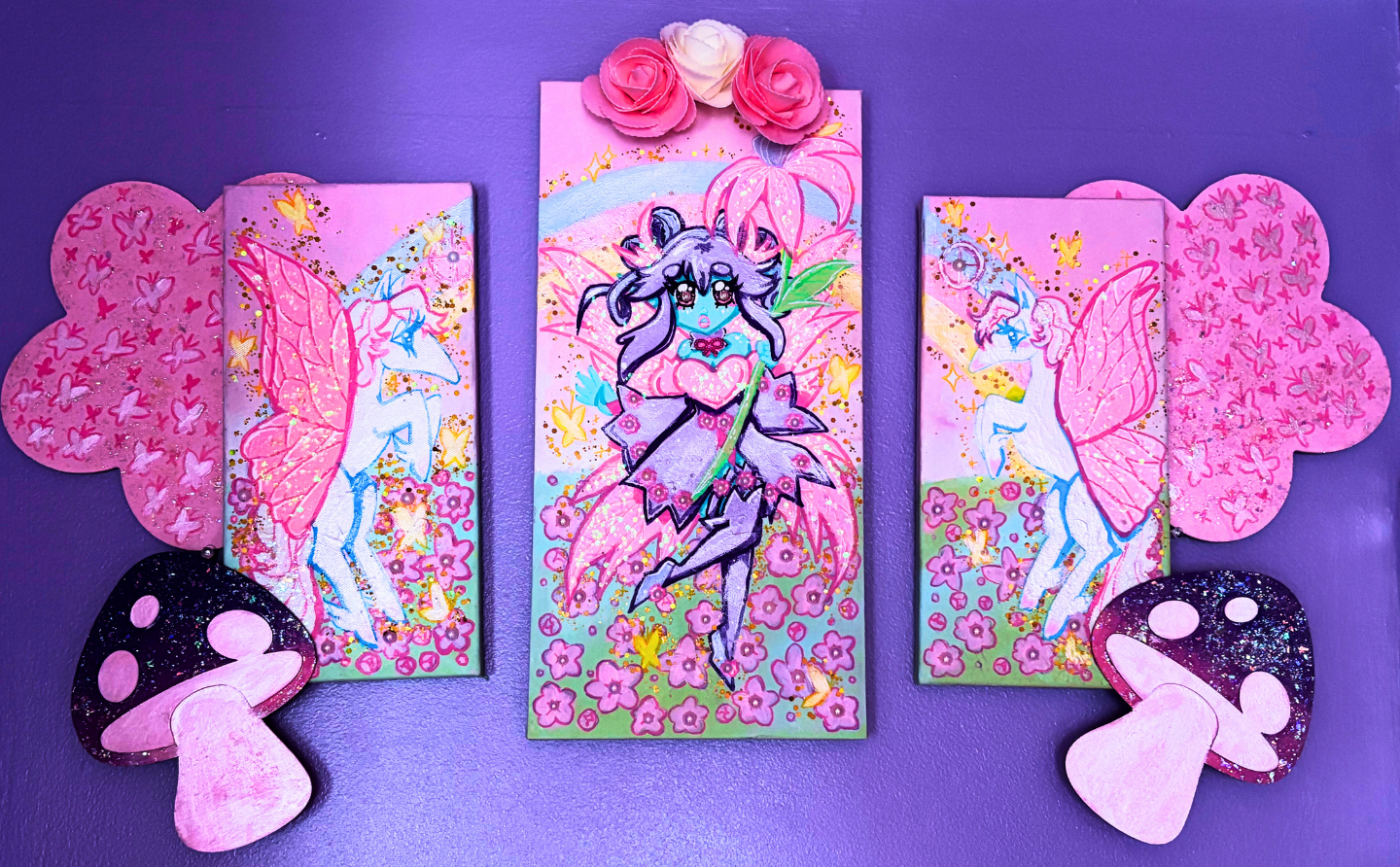 The Doorway to Wonder Triptych. Mixed Media Acrylic Paintings.