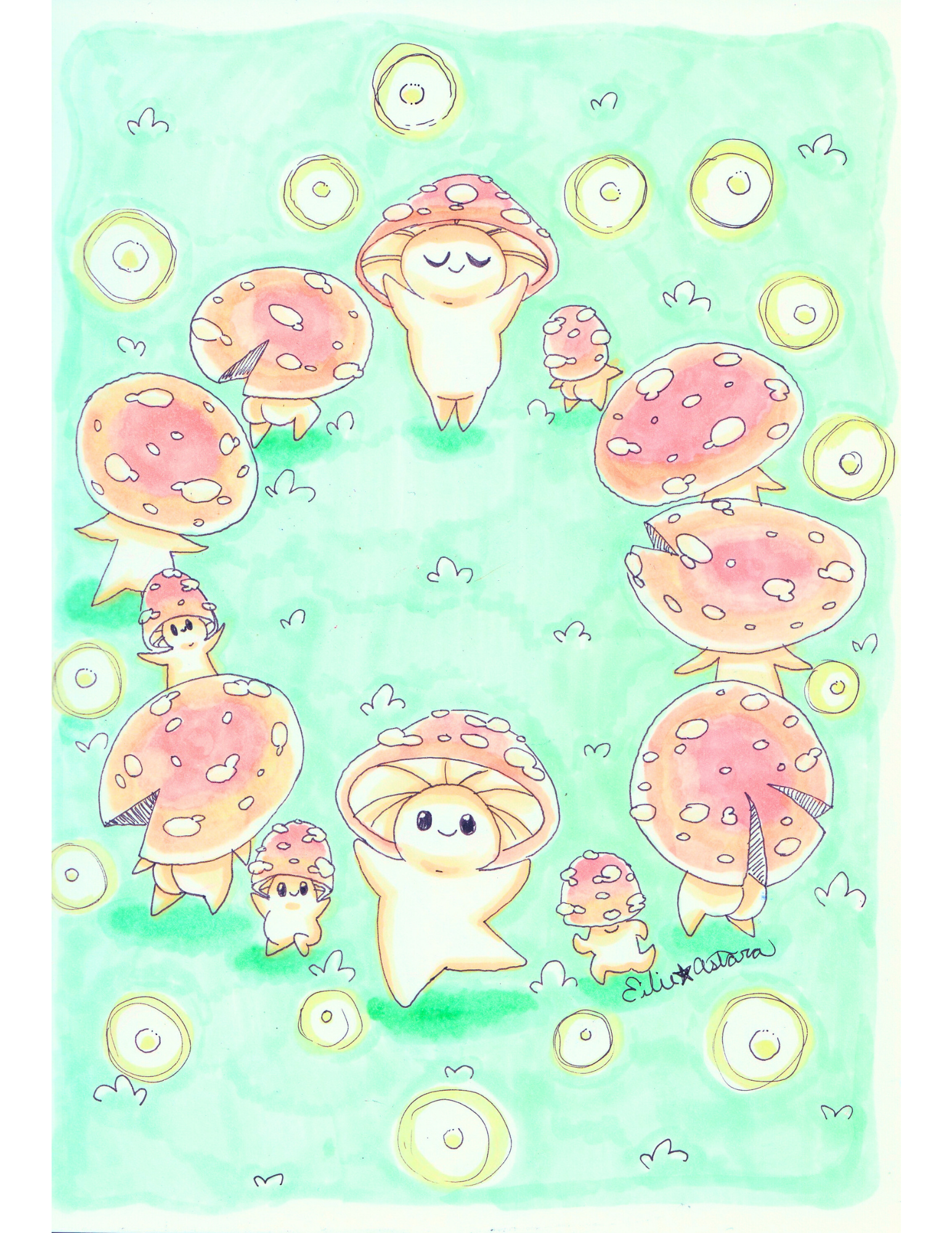Fungi Forest. Watercolor & Ink.