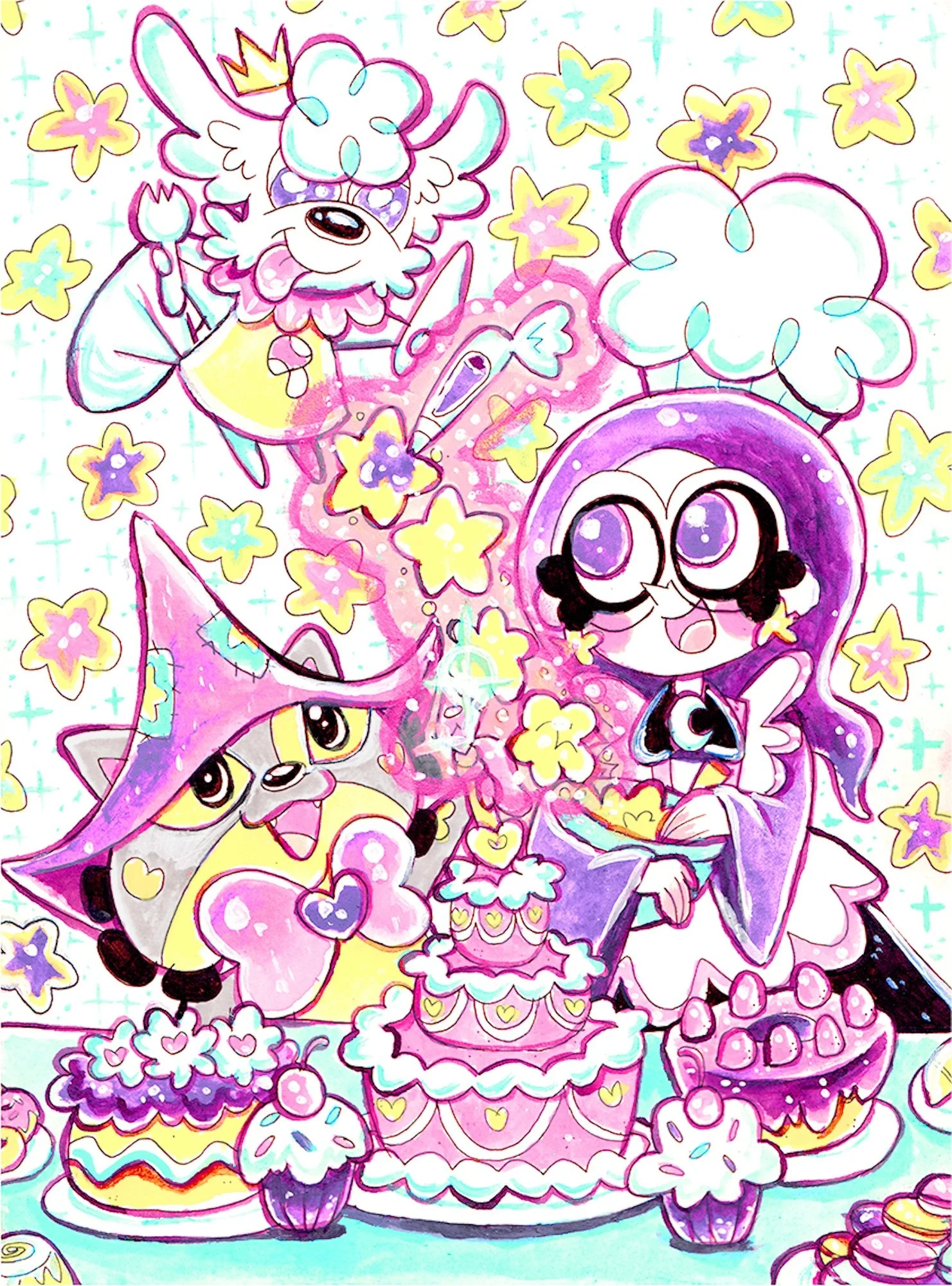 Baking Party. Watercolor. Magikats! The Wand of the Vale Graphic Novel. Available Now.