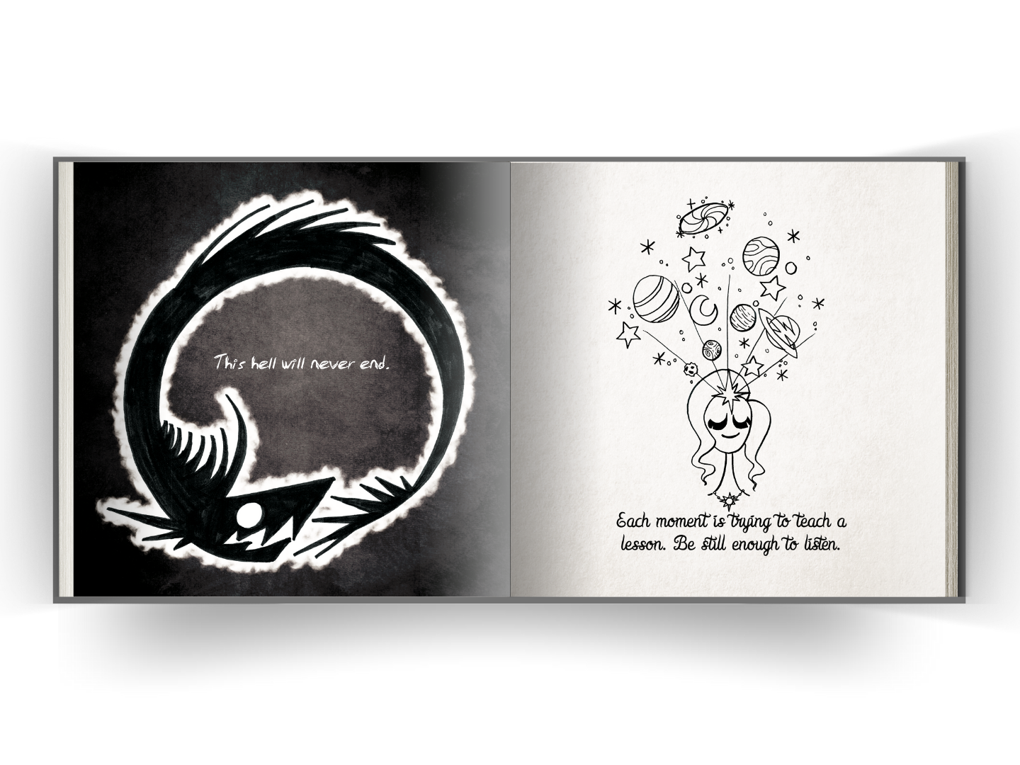 Illustrated and designed with a minimalist, intentional aesthetic, the book uses contrast, symbolism, and negative space to create an immersive reading experience. From conceptual development and visual narrative to layout and print production, the entire project was art directed to ensure cohesion, emotional resonance, and clarity of voice.