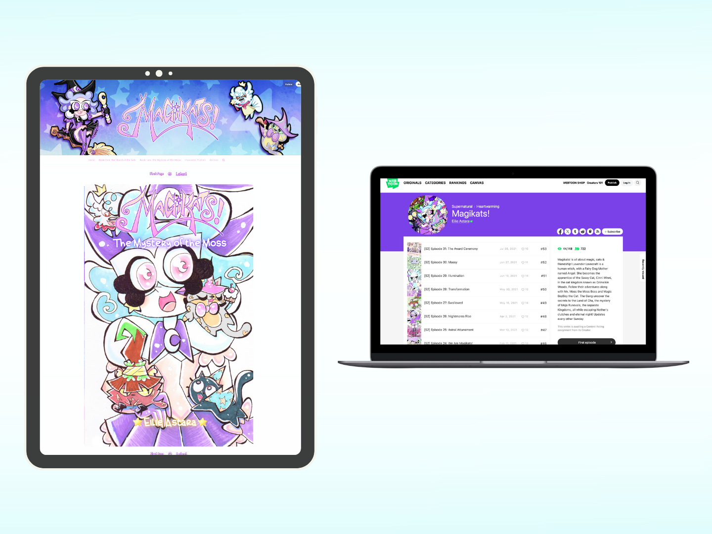Creator of the Magikats! series, introducing an epic fantasy adventure sequel graphic novel to Magikats! The Wand of the Vale. The Mystery of the Moss is about a magical girl, fantastical cats, and the power of animal friendship for kids ages 8-12. Illustrated 172 pages of quality artwork and full-color in a unique, bubbly style, with vibrant colors, playful characters, and humorous, heartfelt storytelling to engage young readers. From character designs, rich world-building, brand guidelines, and book design, I art directed the entire project.