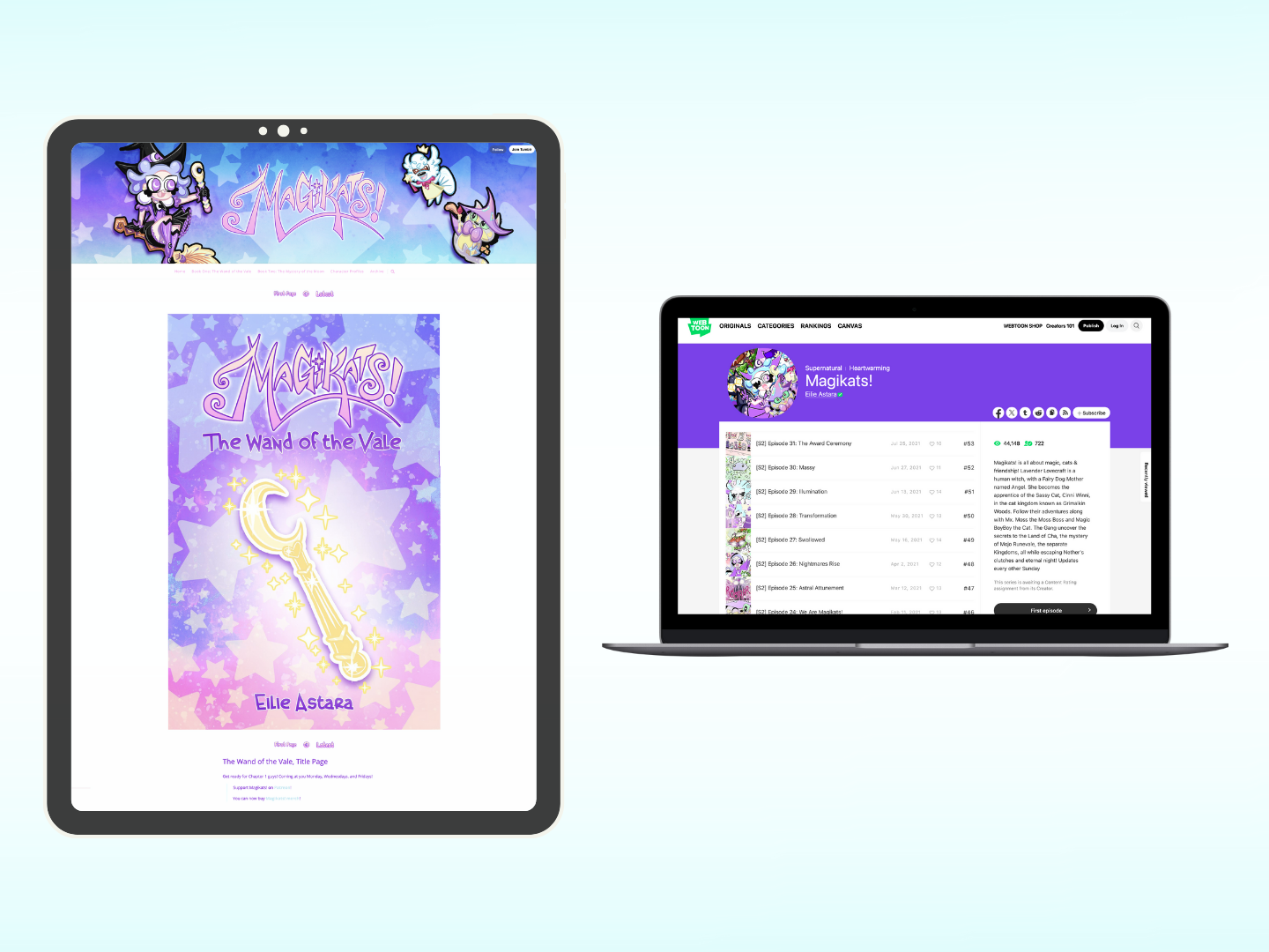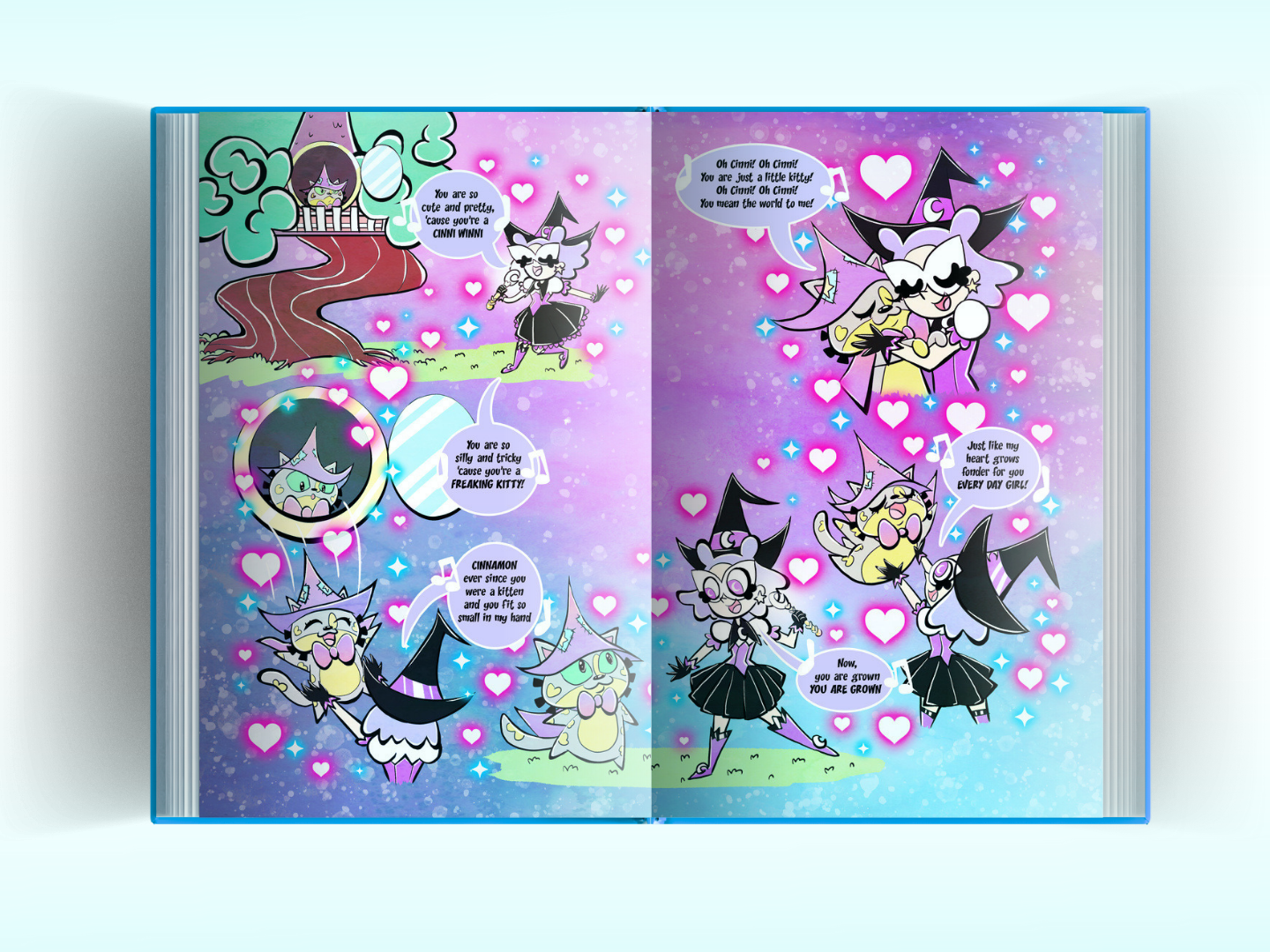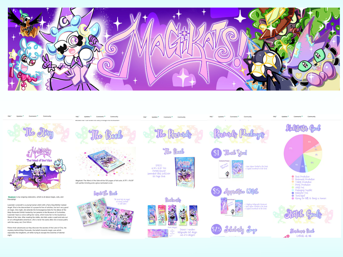 Creator of the Magikats! series, introducing a magical storybook graphic novel, Magikats! The Wand of the Vale, about a magical girl, fantastical cats, and the power of animal friendship. for kids ages 8-12. Illustrated 120 pages of quality artwork and full-color in a unique, bubbly style, with vibrant colors, playful characters, and humorous, heartfelt storytelling to engage young readers. From character designs, rich world-building, brand guidelines, and book design, I art directed the entire project. I also led and marketed a successful Kickstarter campaign with over $10,000 from backers to produce the first book in the Magikat! series.