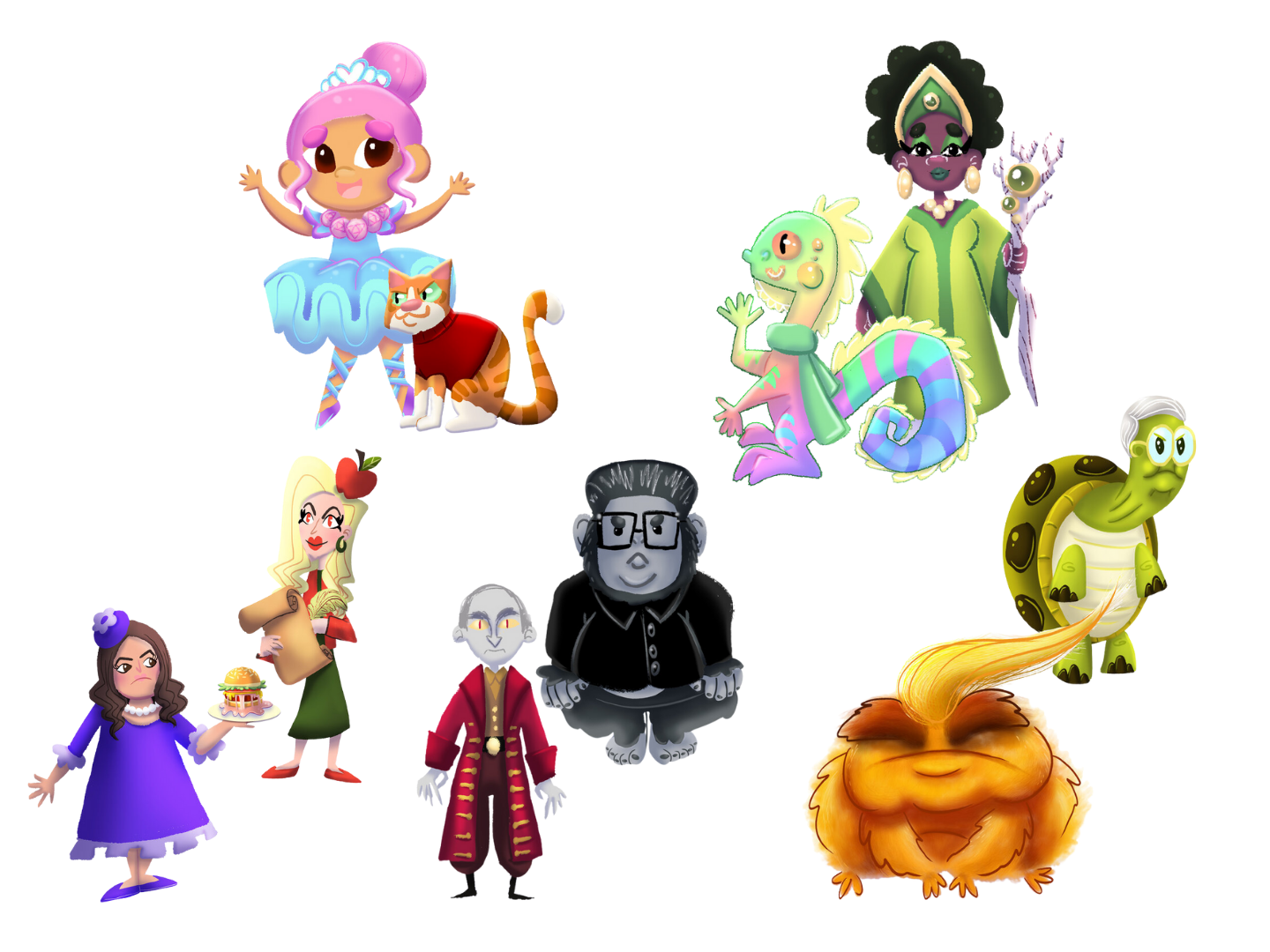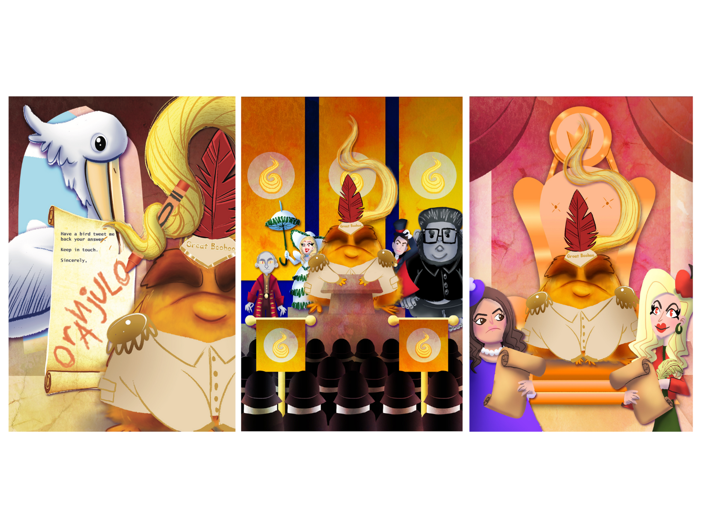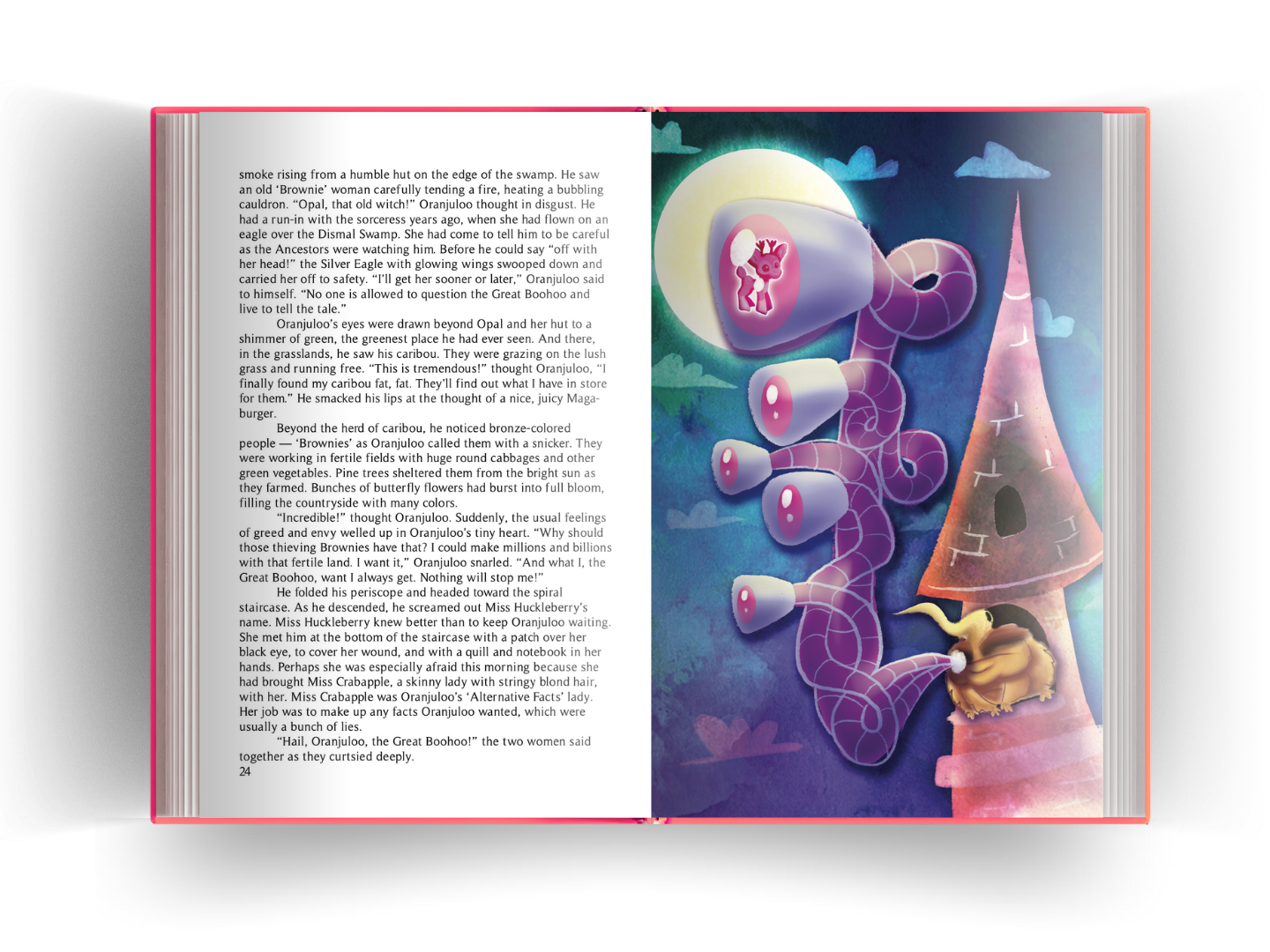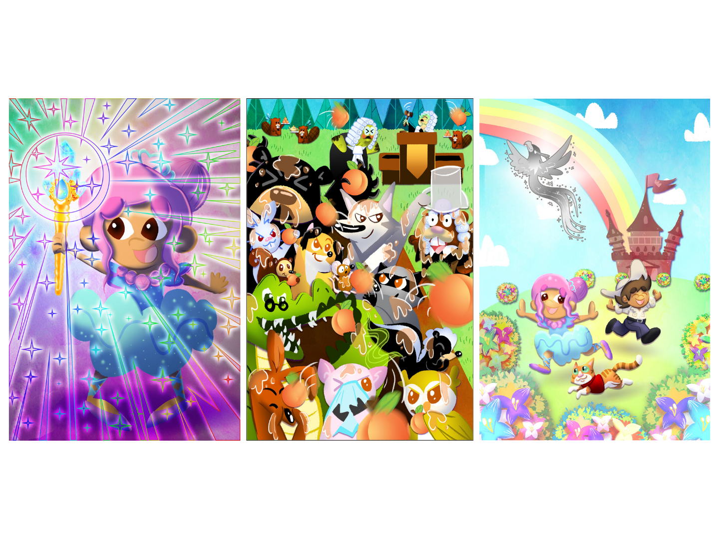 Oranjuloo the Great Boohoo is a 162-page illustrated chapter book created as a collaborative storytelling project, featuring 11 chapters with full-page and spot illustrations woven throughout the narrative. As Illustrator, Designer, and Art Director, I led the visual development of the book, including character design, world-building, visual pacing, and text layout. I established a cohesive visual language that balanced epic fantasy, emotional depth, and whimsy, ensuring the illustrations supported long-form storytelling while enhancing the reader’s immersion and connection to the characters.